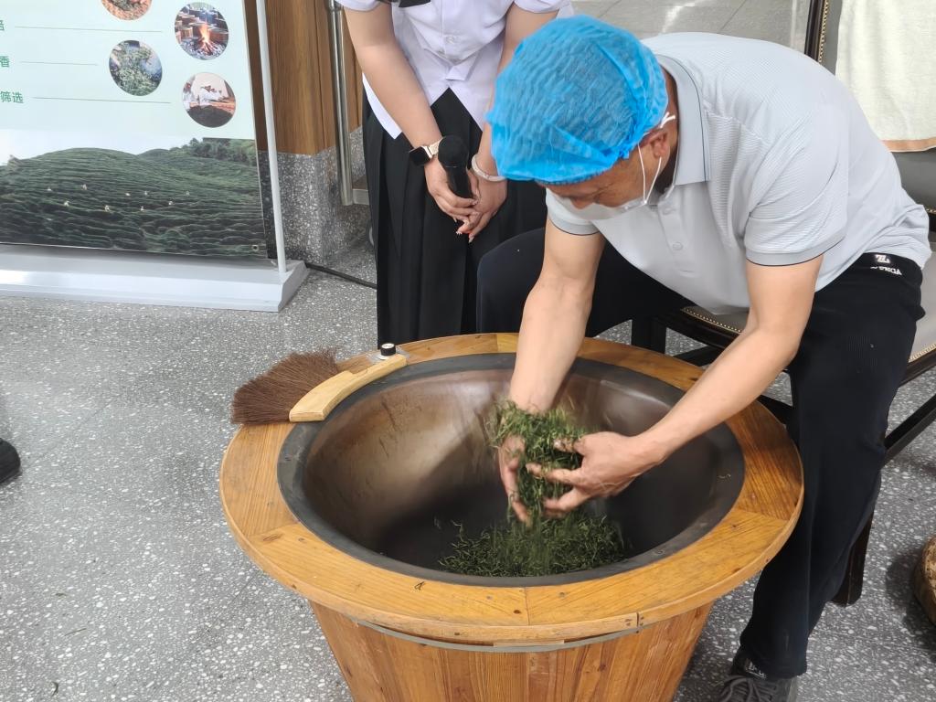 活动伊始,丁昭亮老师在同学们期待的目光中,现场展示了传承百年的川东手工制茶技艺。伴随着铁锅中“噼啪”作响的声音,青翠的茶叶在高温下翻滚,散发出沁人心脾的清香。