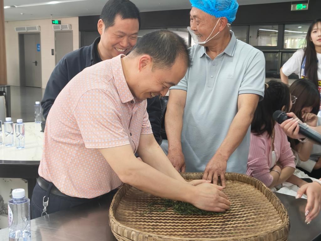 为了让同学们更直观地感受非遗技艺的精髓,活动特别设置了互动体验环节。在丁老师的悉心指导下,师生们亲手尝试揉捻工序。指尖与茶叶的每一次触碰,都让同学们深刻体会到传统手工艺的温度,也让他们意识到每一道工序背后,都蕴含着需要法律去守护的智慧与技艺成果。