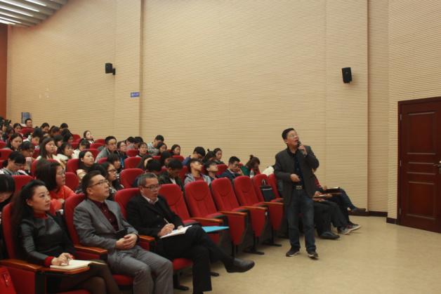 徐教授从“哲学的原意”、“哲学是一种生活方式”和“如何哲学地生活”三个方面,紧紧围绕“哲学与生活”展开详尽的阐释。他对罗素、亚里士多德、柏拉图等西方哲学家的哲学思想提出了自己深刻的见解,也对当代大学生在学习、生活和成长中的迷茫与困惑发表了自己独到的看法。他说生活中处处有哲学,我们要学会用哲学的理念去指导生活---做到理性,冷静地对待生活;做到批判,用批判的精神看待现实中的事物;做到自信,要对自我、对生活充满自信;做到仁爱,用宽容的态度对待他人;做到善于交流,学会平等地与他人交流。他深入浅出的讲解,幽默诙谐的话语,循循善诱的指引,极大的启发师生们对人生的理性思索。讲座已经接近尾声,徐教授师与师生们进行了深入的互动交流,师生们兴致高昂,就学习和生活中遇到的问题纷纷向徐教授请教,徐教授也对其进行了详细地讲解。