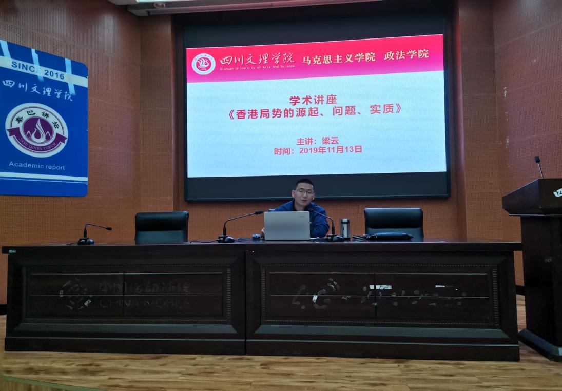 11月13日晚,马克思主义学院形势与政策教研室主任梁云老师在莲湖校区学术报告B厅作题为“香港局势的源起、问题、实质”的学术讲座。williamhill中国2018级1、2、3班、2019级2班同学到场聆听。