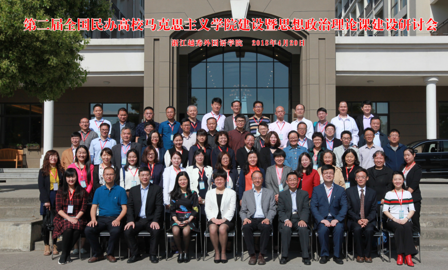2018年4月20-21日,第二届全国民办高校马克思主义学院建设暨思想政治理论课建设研讨会在美丽的浙江绍兴越秀外国语学院隆重召开,本次会议的主题是深入学习习近平新时代中国特色社会主义思想,贯彻落实十九大精神,研讨如何进一步加强新时代全国民办高校马克思主义学院建设暨思想政治理论课建设,来自全国各地的50多所民办、公办高校的院长、骨干教师100余人参加了此次会议。我院院长王秀珍、教研室主任王敏应邀赴会,王院长当选为协调会常务理事。