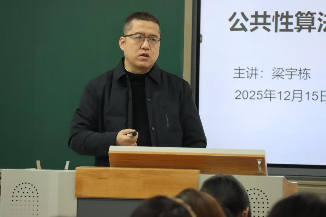 为提升知识产权专业学生对前沿法律问题的认知,深化对算法治理与法律规制的理解,12月6日,法学教研室主任梁宇栋老师开展“公共性算法及其法律规制”专题讲座,知识产权专业学生齐聚课堂,共同聆听这场兼具理论深度与实践价值的分享。