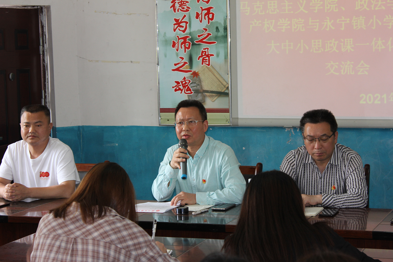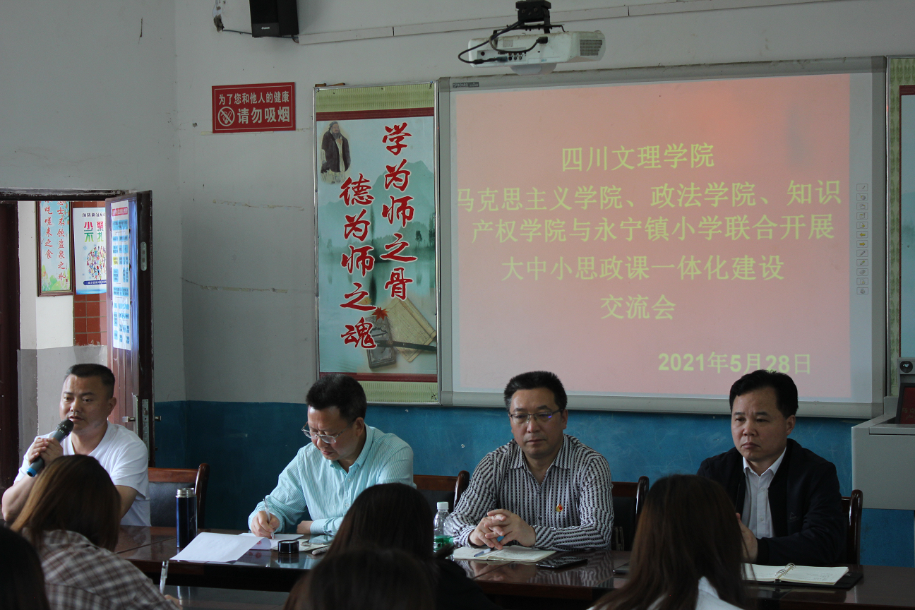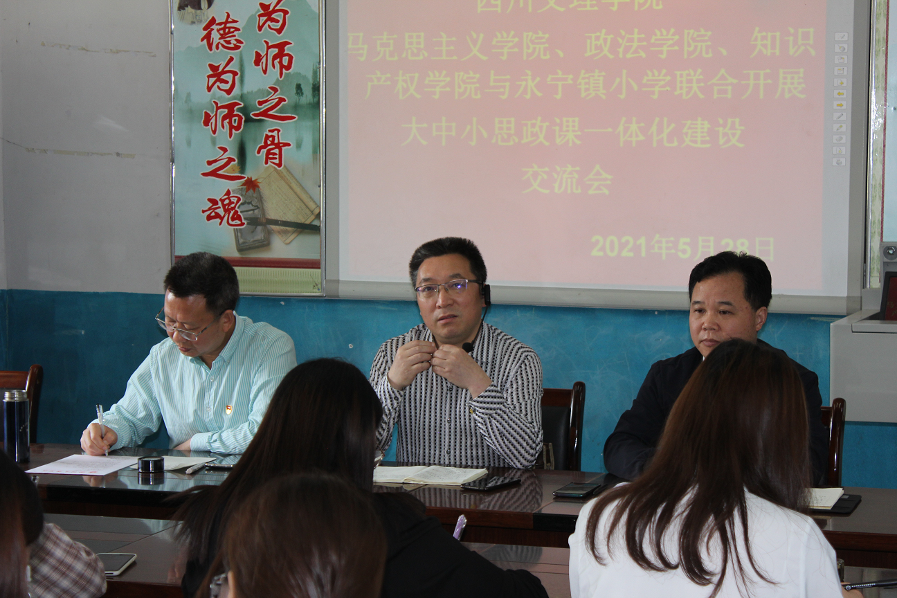 5月28日,马克思主义学院、williamhill中国、知识产权学院与万源市永宁镇小学,联合开展了大中小学思政课一体化教学研讨活动。学院党总支书记刘春辉、院长刘长江出席并讲话。永宁镇小学校校长卢成军出席并作报告。万源市委宣传部副部长(挂职)李玉印出席活动。