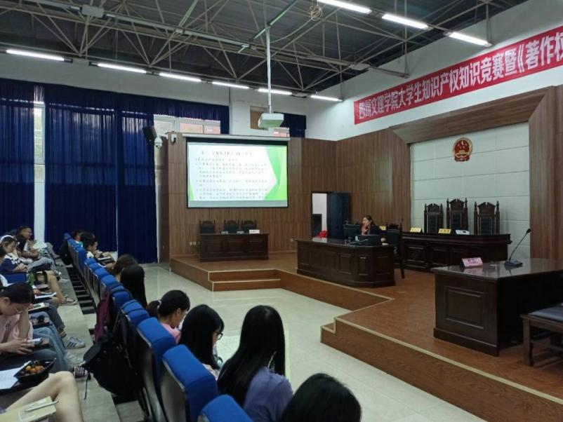 5月19日晚7点,法学教研室主任在模拟法庭开展《著作权法》知识讲座。2018级4班、2019级4班、2020级4班全体同学到场聆听。