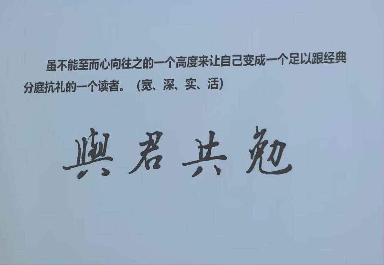 最后,何先成老师说:“虽不能至而心向往之”要用这样一个高度来让自己变成一个足以跟经典分庭抗礼的一个读者。 强调我们多读经典,要博学强志,深精专业,实实在在,活学活用,这次讲座,让我们对文学经典以及茶文化有了更深的认识,体会到了其博大精深。