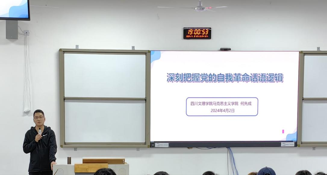 为了让同学们更好地理解与借鉴党成功的经验,激励广大青年在新时代新征程上不懈奋斗,4月2日晚,马克思主义学院副院长何先成研究员在莲湖东区A318教室为我院大一大二学生作题为“深刻把握党的自我革命话语逻辑”的学术讲座。
