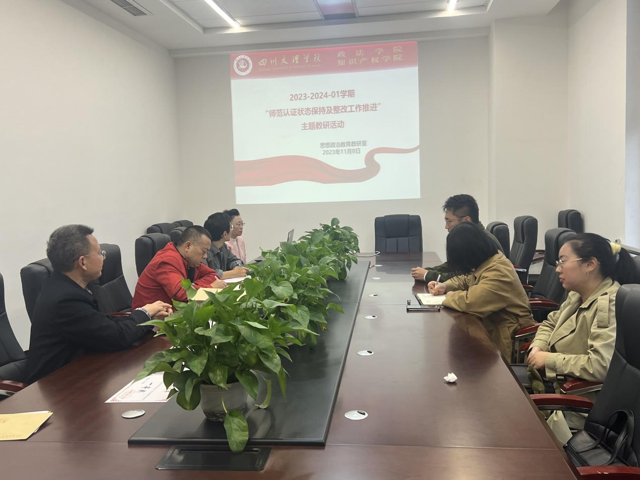 为进一步落实改进思想政治教育专业第二级认证中存在的问题,推进相关整改工作的开展,11月8日下午,学院思想政治教育教研室组织召开了2023-2024-1学期“师范认证状态保持及整改工作推进”主题教研活动。本次活动由教研室主任曹红梅主持,院长刘长江和思想政治教育教研室全体教师参加本次教研活动。