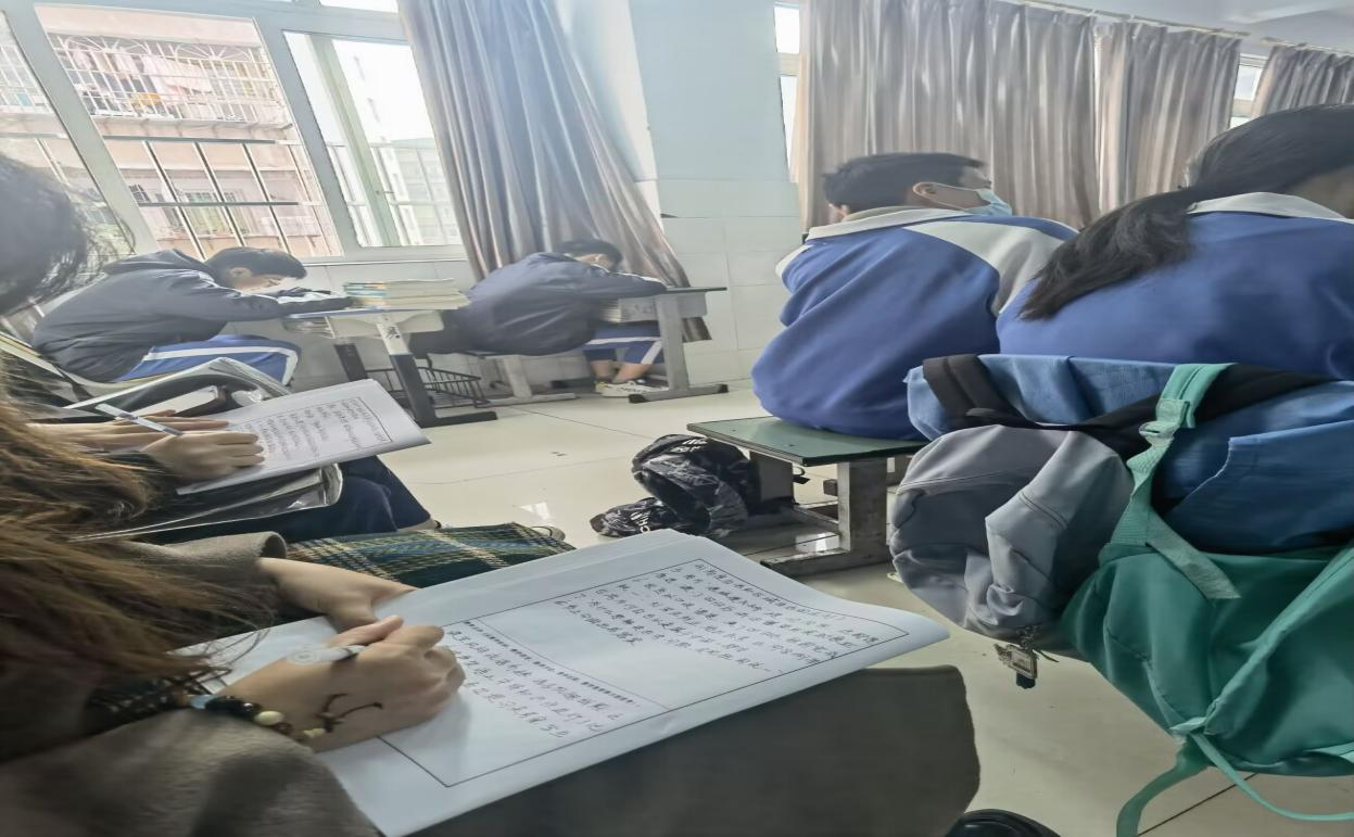 我院参加见习的学生在中学课堂上认真填写听课记录