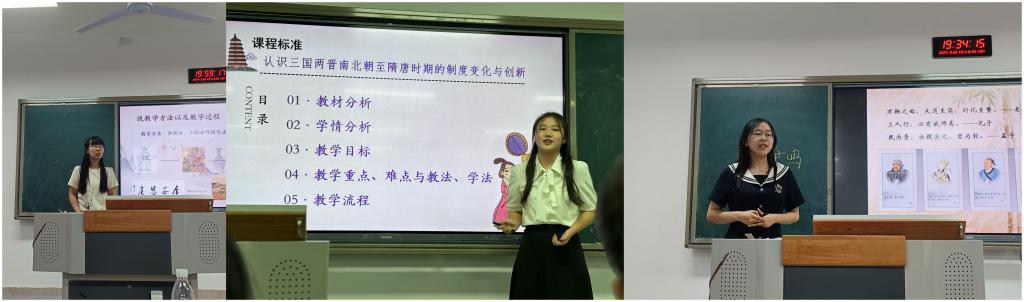 9月25日,为进一步促进历史学专业师范生教学能力的全面提升,培养具有高尚师德、先进教学理念、扎实教学技能的优秀中学教师后备力量,选拔优秀学生参加浙江师范大学组织举办的第十届“田家炳杯”全国师范院校师范生教学技能竞赛,历史学教研室于莲湖东区B305教室组织举办了院内选拔赛决赛。
