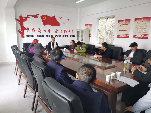 随后,刘春辉书记说道:习近平总书记说,脱贫摘帽不是终点,而是新生活、新奋斗的起点。接下来要做好乡村振兴这篇大文章,推动乡村产业、人才、文化、生态、组织等全面振兴,而千千万万个基础堡垒是最坚强、最可靠的保障。我明显感受到我们简槽村党支部的战斗力和凝聚力比我们2018年结对共建前增强了。接下来,我们还需要继续发挥我们基层党支部的引领作用,做到“七个让 ”:让党旗永远飘起来,哪里有党员,哪里就是一面党旗;让干群的心连起来,只有干群一条心,才能确保脱贫攻坚取得的成果和打赢新冠肺炎疫情阻击战;让产业旺起来,为持续增加村民们的收入找到门路。让环境美起来,提升村民们的生活质量、让村民都能过上美好的生活;让文化活起来,不断丰富村民们的精神文化生活,不断提升生活品质;让乡村治理强起来,要让村规民约成为村民自治中,最好的治理法宝;让生活富起来,确保我们简槽村在今年同全国各族人民一道过上小康生活、迈入小康社会。
