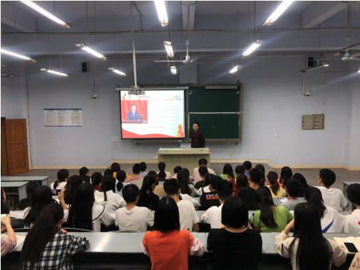 为深入学习贯彻党的十九大精神,增强学生党员的先锋模范意识,在中华人民共和国成立70周年大庆即将来临之际,我院学生党支部于2019年9月25日19:00在博文楼523教室举办了“不忘初心,牢记使命”主题党课。本次党课由学院党总支副书记吴辉兵主讲,2017级、2018级全体学生党员和入党积极分子参加了此次党课学习。