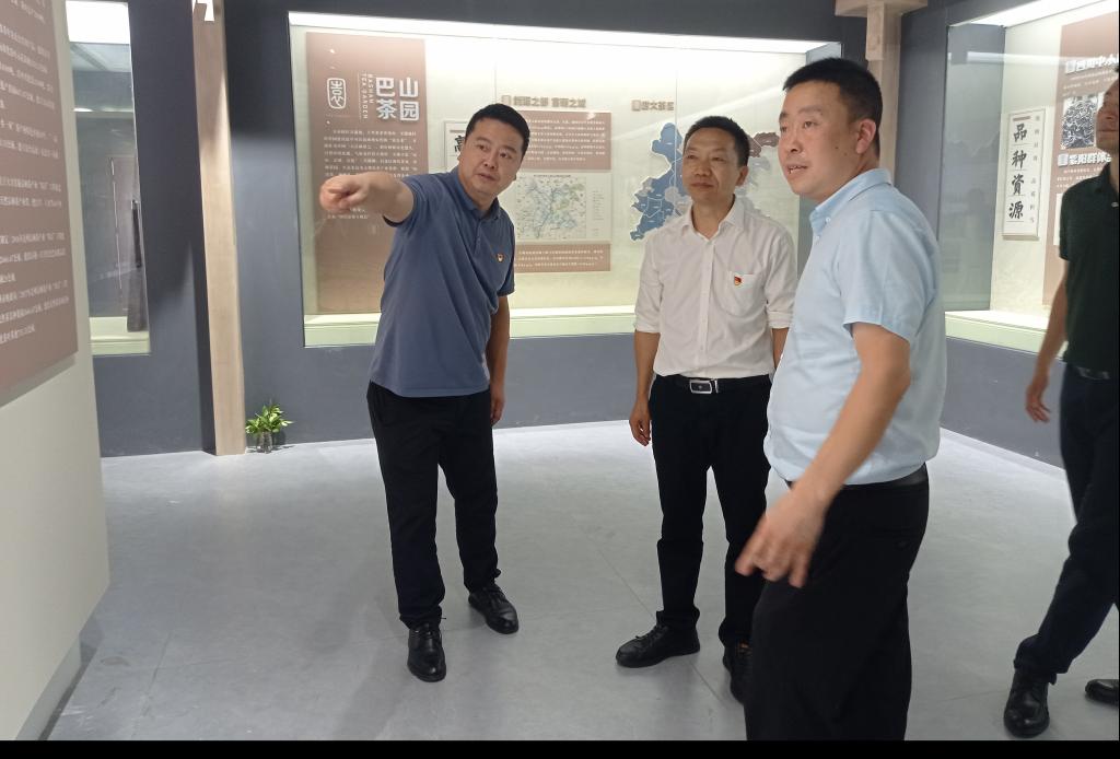 座谈结束后,岳书记及随行参观了巴山富硒茶史馆。固军镇人大主席田田和三清庙村副主任胡绍超向大家详细介绍了茶叶发展历史、中国茶文化茶艺培训和体验方式。据介绍巴山富硒茶史馆集文化展示、科普宣传、科学研究、学术交流、茶艺培训、互动体验、品茗、餐饮、会务、休闲等服务功能于一体,是四川乃至全国茶文化的展示交流中心,也是茶文化主题旅游综合体。