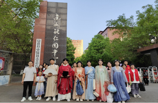 4月14日下午五点,在思想政治与历史党支部书记、蒹葭汉服社指导老师王盟的带领下,蒹葭汉服社部分成员及汉风雅韵志愿小队赶赴达州铭仁园学校宣讲中华优秀传统文化。