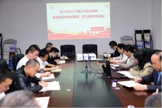 他进一步要求广大党员教师着力适应新形势,担当尽责,顺应大势,主动作为,努力推动学院新发展。号召大家在工作中坚持以习近平新时代中国特色社会主义思想为指导,将学习好、宣传好、贯彻好党的二十届三中全会精神作为当前和今后一段时期的重大政治任务,以“为党育人、为国育才”为初心使命,努力为党和国家培养德智体美劳全面发展的社会主义建设者和接班人,为全面建成社会主义现代化强国、实现中华民族伟大复兴贡献力量!
