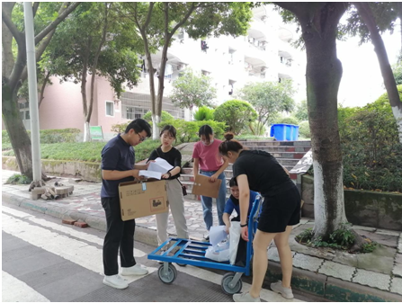 6月15日上午,在辅导员曾亚老师的带领下,williamhill中国党员服务队前往学生宿舍为学院同学邮寄笔记本电脑、部分书籍以及其他个人物品。