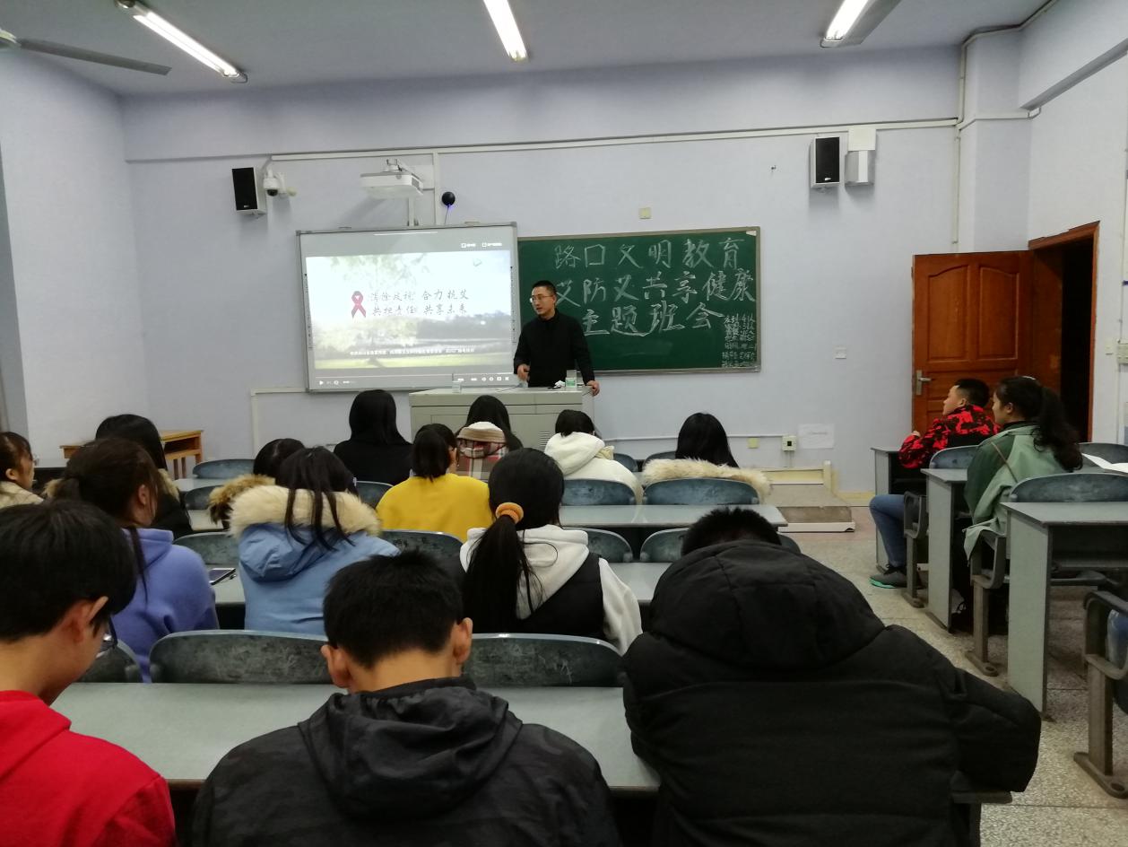 为加强广大学生的防艾意识和道路安全意识,12月1日晚,我院各班在博文楼开展“知艾防艾、共享健康暨路口文明教育”主题班会,各班辅导员老师主持班会。