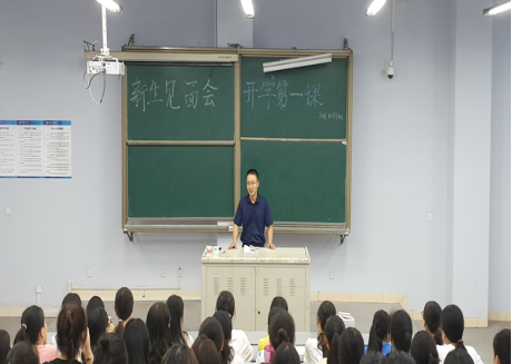 2019年9月12号晚上七点,我院在分别在博文楼523和524教室开展以“新生见面会,开学第一课”为主题的活动,党总支副书记吴辉兵,学工办主任唐幸福,2019级各班辅导员助理和全体新生参加了此次活动。