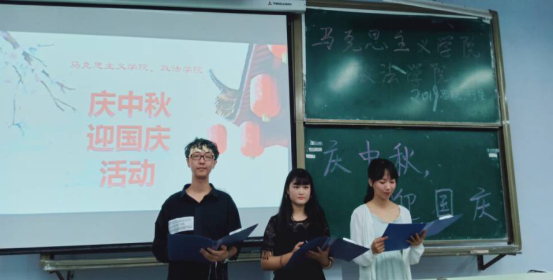 9月13日晚,我院在博文楼523教室和524教室召开“庆中秋,迎国庆”主题班会。学工办主任唐幸福出席,部分团学干部以及2019级全体同学参加活动。