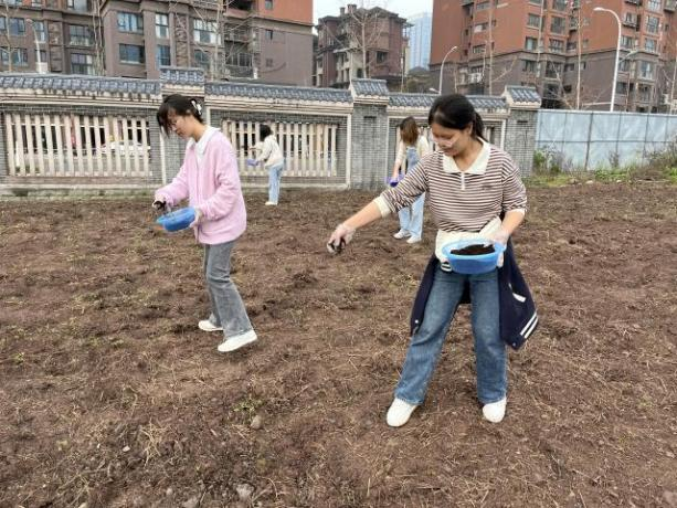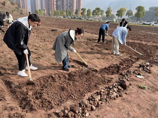 在学院书记和院长的指导下,同学们来到劳动基地,纷纷撸起袖子加油干,全身心投入到劳作中去。在劳动中,大家分工明确,团结协作,不怕脏、不怕累,认真清除枯枝杂草,集中捡拾垃圾、清理砂石等废弃物,有序进行翻地、松土工作,整个过程干得热火朝天。前期工作准备完毕后,同学们紧接着进行下一环节的工作,在劳动基地上平衡施肥,撒下花种与草种,期待夏日花开。