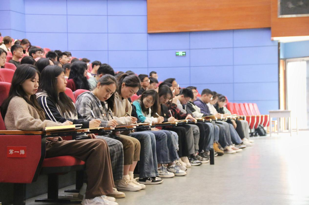 讲座结束后,学生代表付宏上台分享此次讲座心得并结合自身经历向大家发出号召。他表示:“刘春辉老师的讲座,内容丰富,意蕴深厚,清晰地阐述了中国式现代化的发展历程、产生背景、内涵以及实现途径,我深受启发,对中国式现代化有了一个更新的理解。”同时,他号召大家:“当代青年生逢盛世,应与祖国同心同行,我们作为青年大学生,应努力学习先进思想和科学文化知识,以青春之力量谱写中国式现代化新篇章!”。