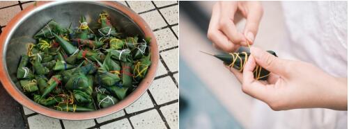 13日上午9点志愿者们早早的来到文理学院的美食广场,将准备好的糯米、绿豆、红枣、咸蛋黄等粽子原料,亲手包成一个个充满祝福的小粽子。许多第一次包粽子的同学,在食堂阿姨和其他同学的帮助下也很快上手,乐在其中。