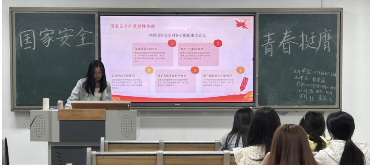 为了提高我院学生的国家安全意识,在第十个全民国家安全教育日即将到来之际,2025年4月13日,我院各班在莲湖校区东区教学楼开展“国家安全·青春挺膺”主题团日活动。此次活动由各班团支书主持,带班辅导员老师出席并讲话,全体同学积极参与。