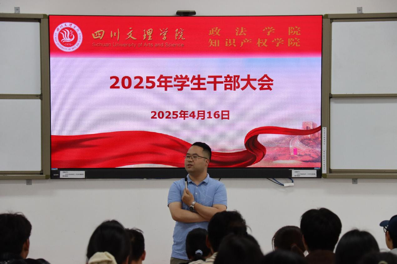 为迎接本科教育教学审核评估,强化学生干部责任担当,2025年4月16日,学院在莲湖校区东区A318教室召开全院学生干部大会。学工办主任兼团总支书记邓超,专职辅导员李媛媛、邱文艳,学院团总支、学生会全体成员及各班级团支书、班长参加会议。邓超主持会议。