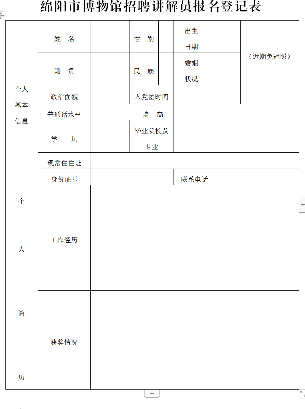 绵阳市博物馆招聘讲解员报名表