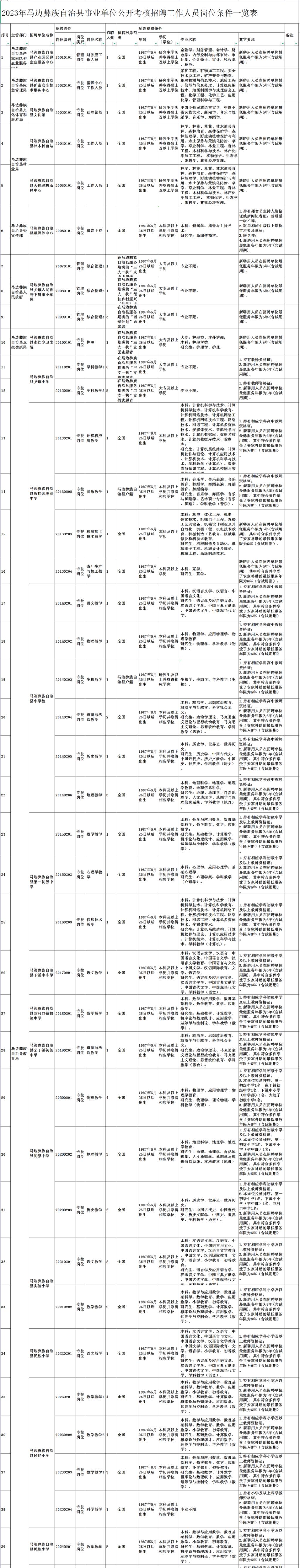 附件1..2023年马边彝族自治县事业单位公开考核招聘工作人员岗位条件一览表.xls