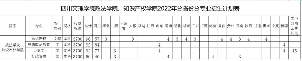 williamhill中国、知识产权学院2022年分省份分专业招生计划表