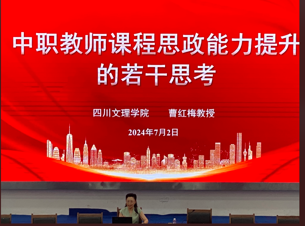 为进一步提升中职教师的思想政治教育教学素养和专业能力,推进课程思政建设,7月2日,我院曹红梅教授应达州技师学院的邀情,为该校全体教师做了“课程思政能力提升”的专题讲座。