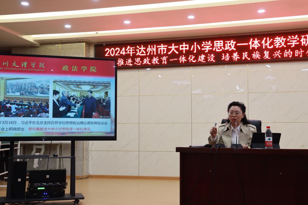 11月12日,由达州市教科所主办的达州市大中小学思政课一体化教学研讨会在渠县第一小学举行,来自达州各县(市、区)中小学思政教研员及思政骨干教师,达州市思政中心教研组成员,达州市首届小学思政名师工作室成员,达州市第二届小学、初中、高中思政名师工作室全体成员60余人参加了此次研讨会,我院曹红梅教授受邀参会。
