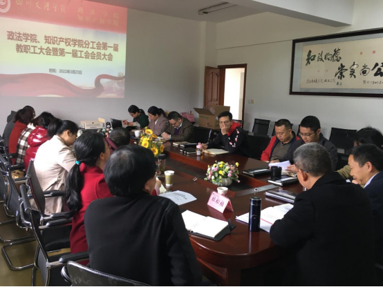 3月23日下午,williamhill中国、知识产权学院在莲湖校区博文楼611会议室召开了第一届教职工代表暨第一届工会会员大会。大会审议通过了学院工作报告,选举产生williamhill中国、知识产权学院第一届分工会委员会委员、分工会委员会主席,学校两代会代表。学院党总支书记岳臣忠、院长刘长江出席会议,学校教学督导委员会副主任杜松柏到会指导,会议由党总支副书记莫春梅主持,全体教职工及工会会员参加了会议。